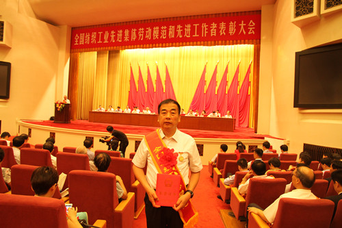 我公司董事長程亞利同志,以企業(yè)家的睿智和膽識,用堅忍不拔的意志助推紡織產(chǎn)業(yè)發(fā)展,做到超前謀劃、準(zhǔn)確定位、開拓經(jīng)營、持續(xù)發(fā)展,公司經(jīng)濟(jì)運(yùn)行指標(biāo)連年快速增長,帶領(lǐng)企業(yè)走出了一條實業(yè)報國之路,被大會授予“全國紡織勞動模范”榮譽(yù)稱號。